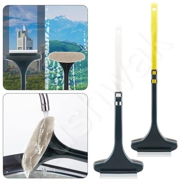 2-in-1 Window Cleaning Brush Double-Sided Net & Wiper, Extended Handle - Multi-Color