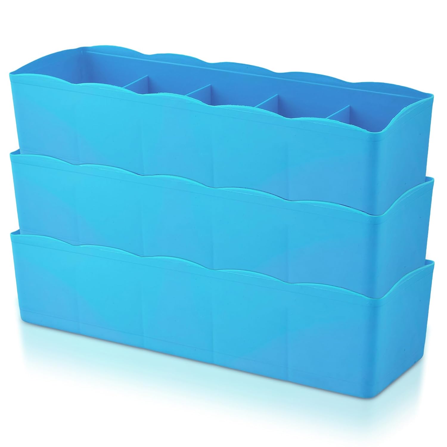 Plastic Drawer Organizer Box – 5-Grid Stackable Divider for Undergarments, Socks, Ties, Stationery – Pack of 3 (Mix Colors)