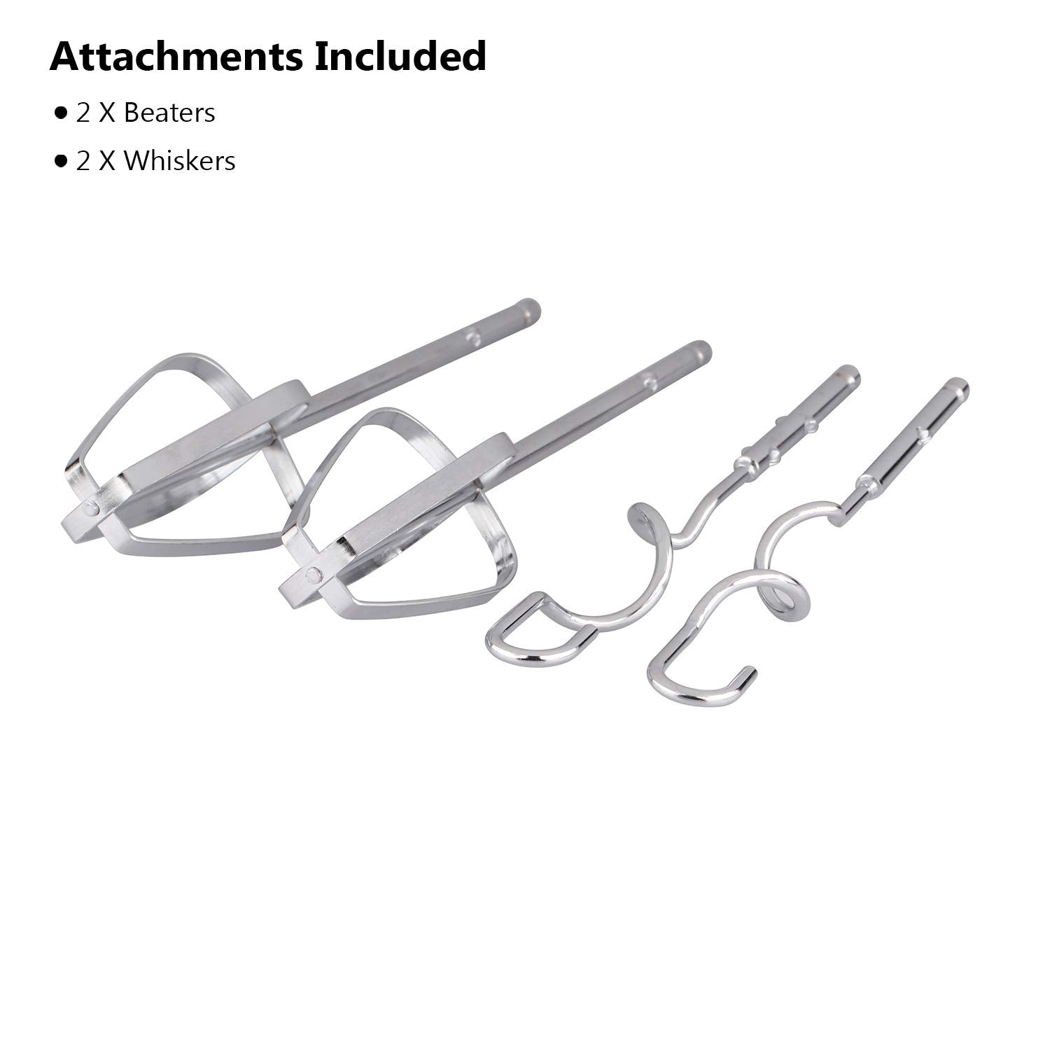- Versatile Attachments: Includes 2 stainless steel whisks and 2 beaters, perfect for a wide variety of tasks like whipping, blending, and kneading.